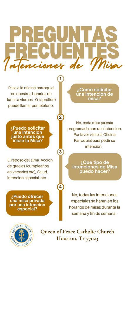 - Venir personalmente a la oficina a llenar la solicitud de intención de misa o llamar al numero 713 921 6127